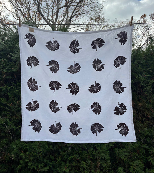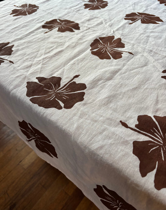 A Ivory Bloom Brown Hibiscus Linen Tablecloth