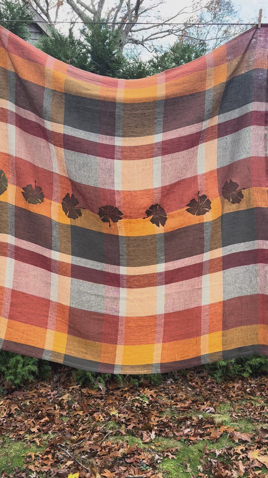 Checked Yarn-Dyed Brown Hibiscus Linen Tablecloth
