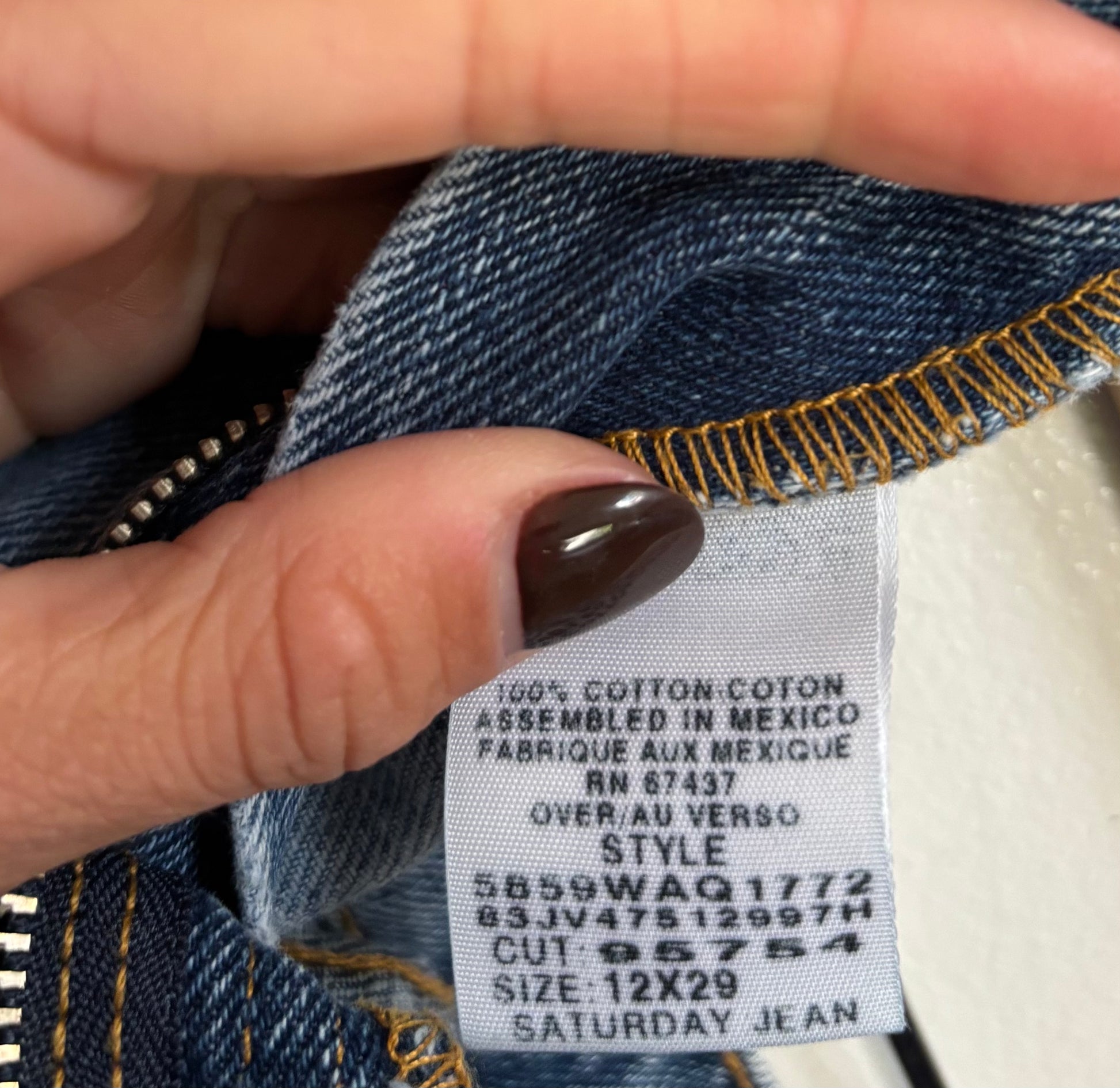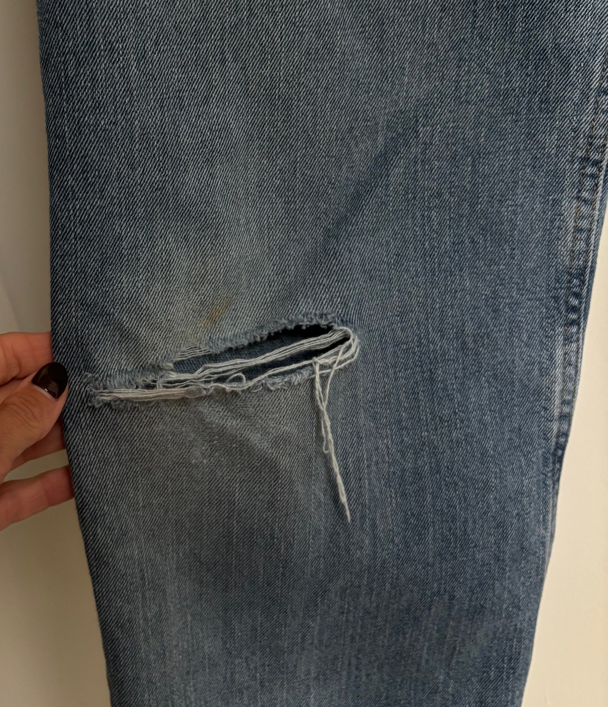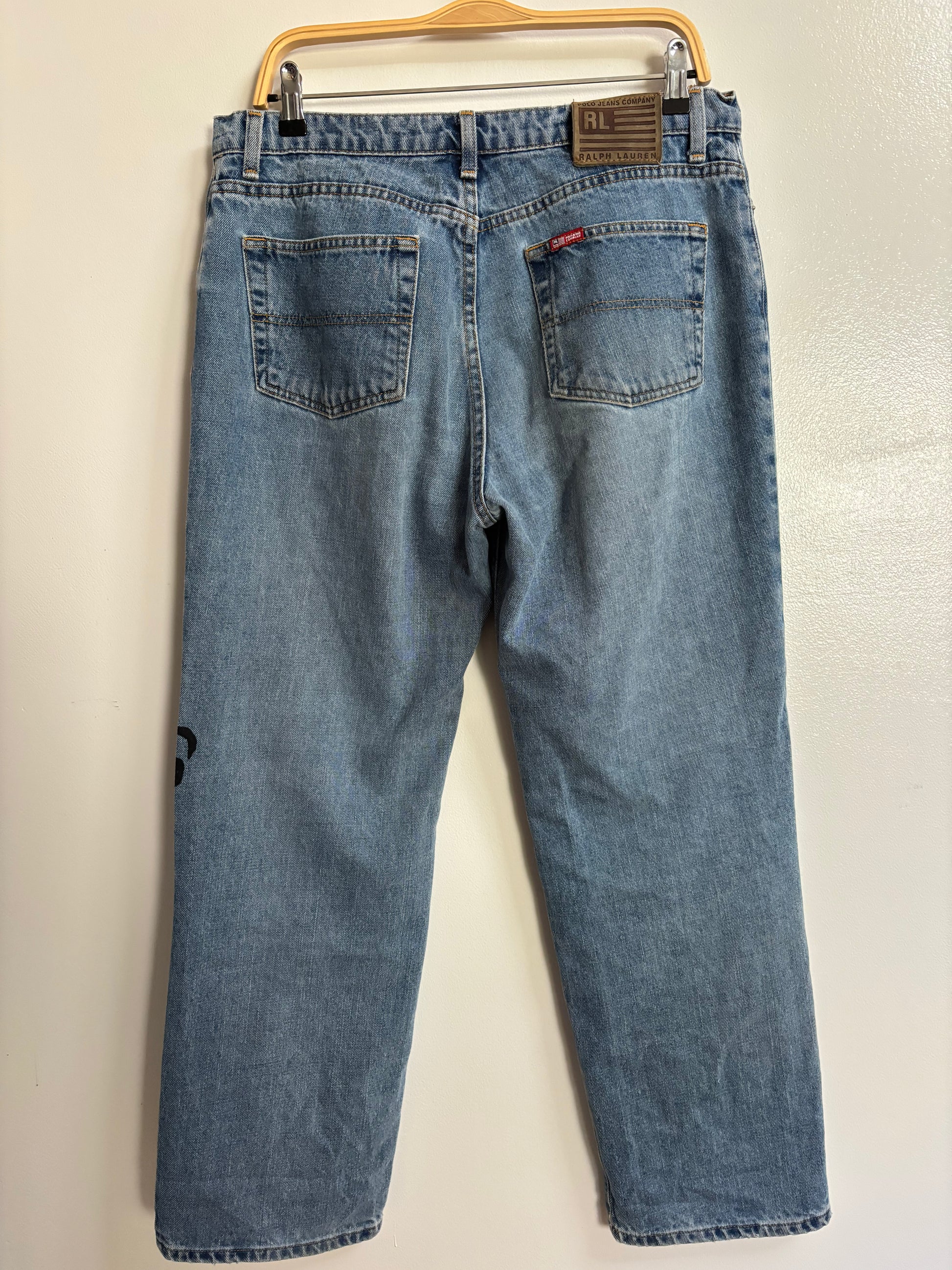 Cherry bow print above the knee, baggy 100% cotton, vintage jeans.