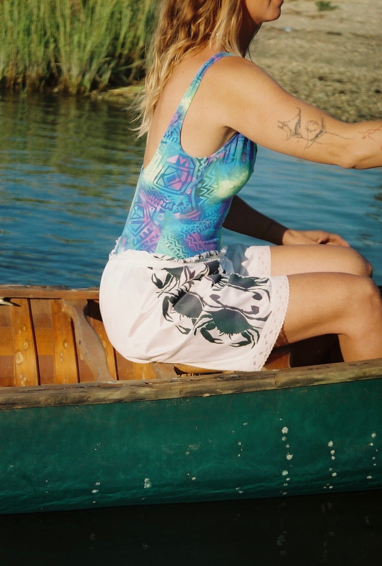 Crab leg double vision vintage semi-sheer bloomer shorts with lace detail. Perfect with an oversized shirt or dress that's too short.