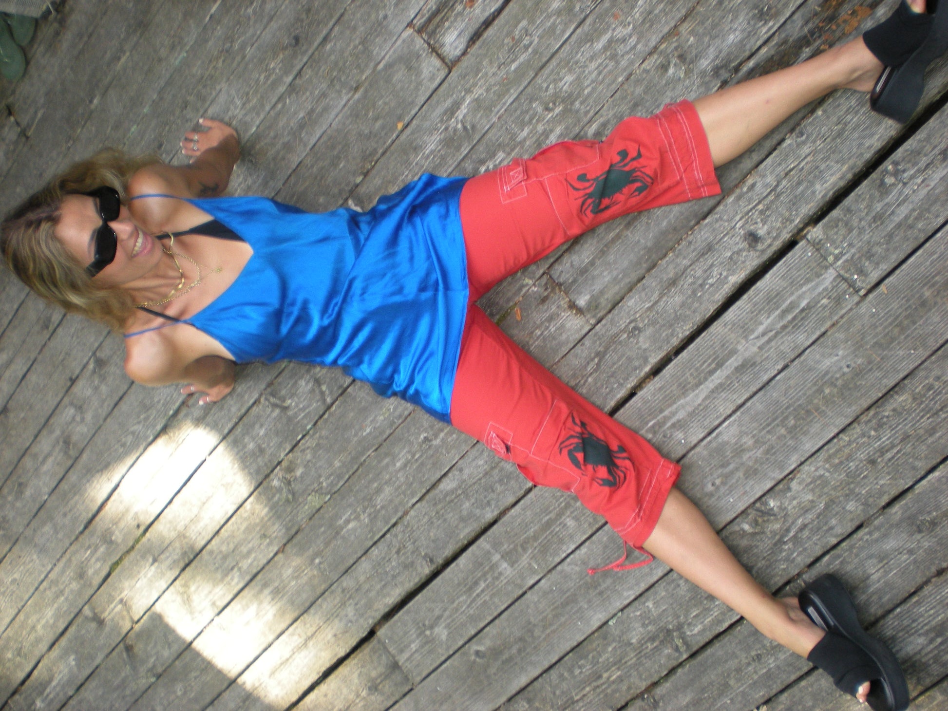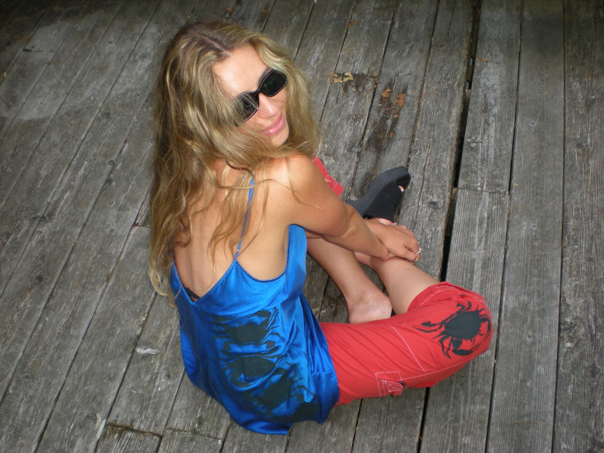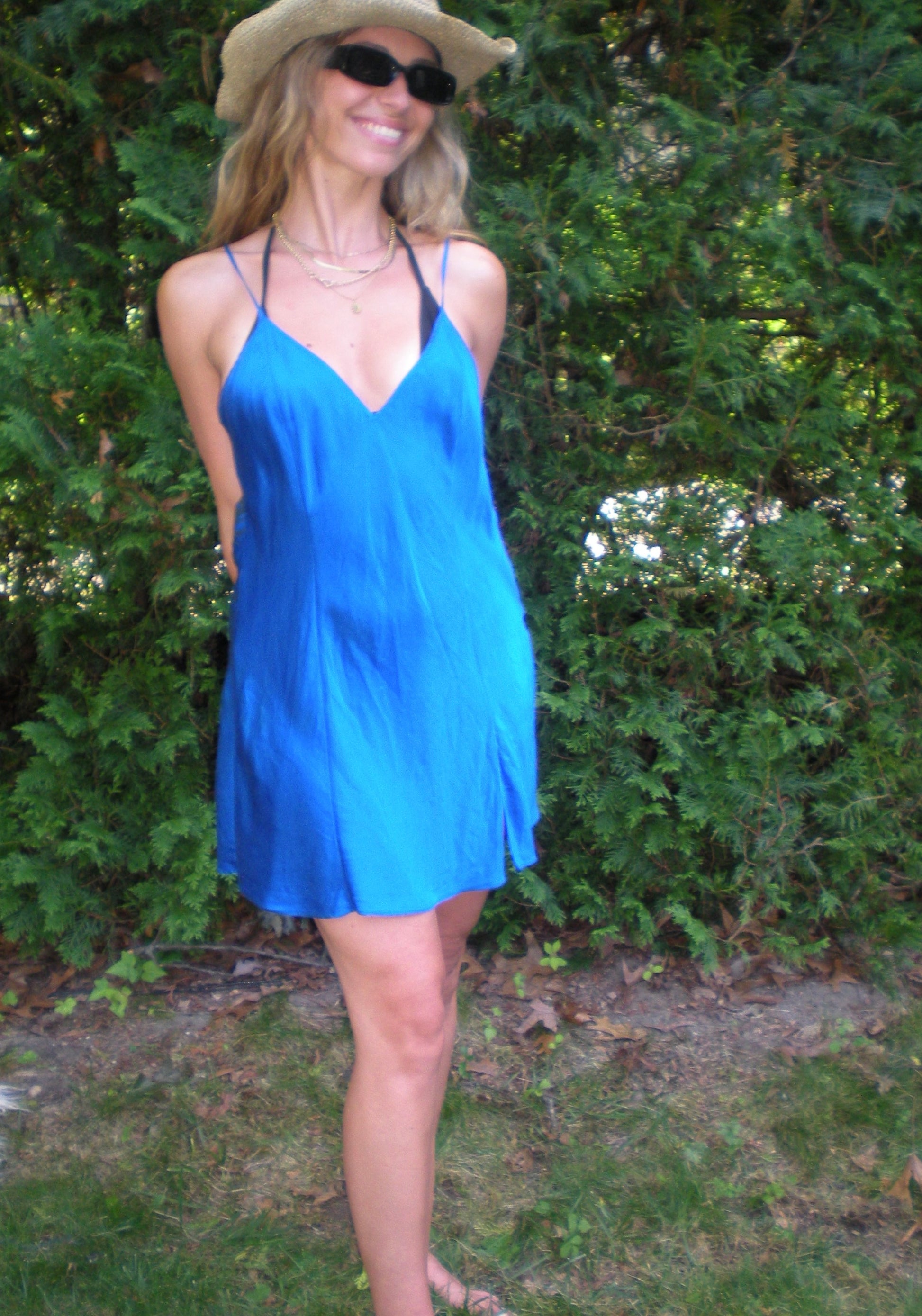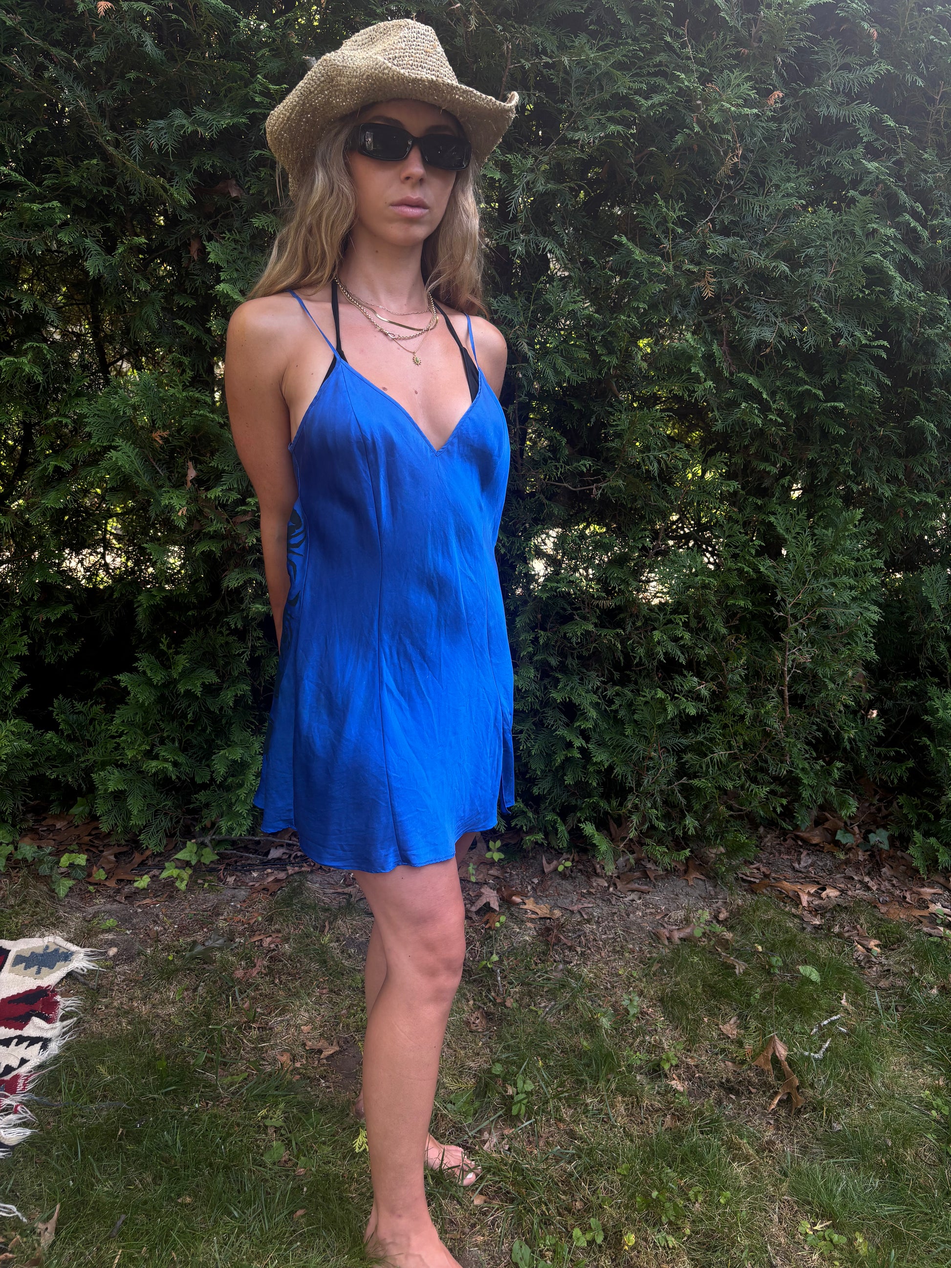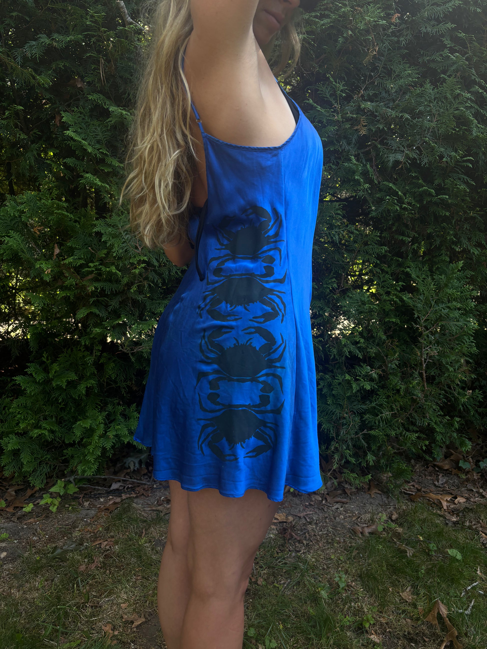 Crab back print 100% silk vintage blue slip.