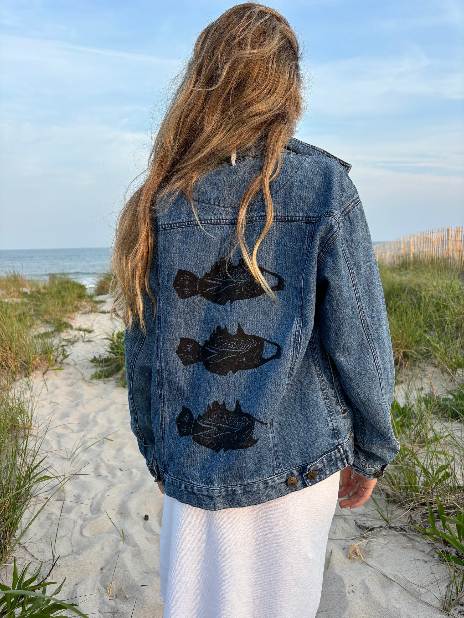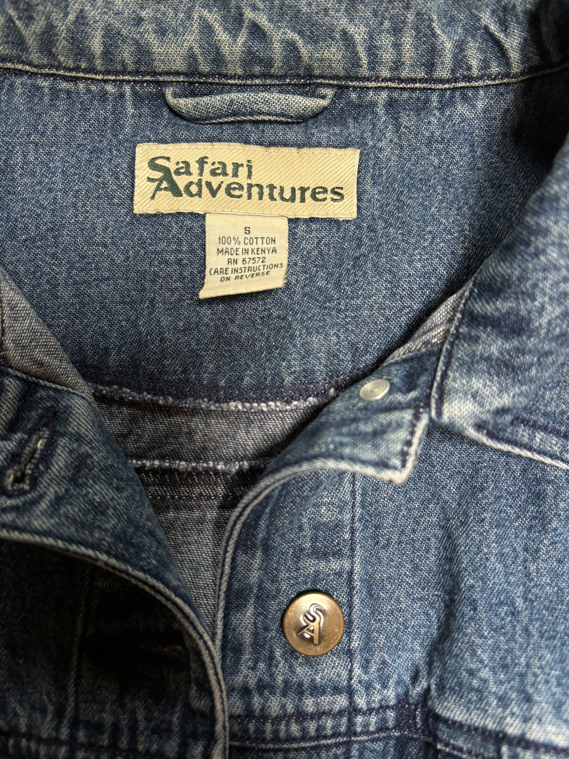 Humuhumu print lightweight denim jacket. High quality vintage, made in Kenya, 100% cotton.
