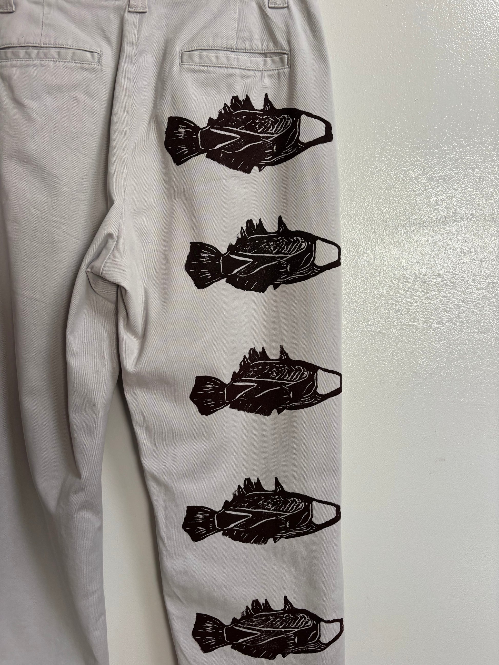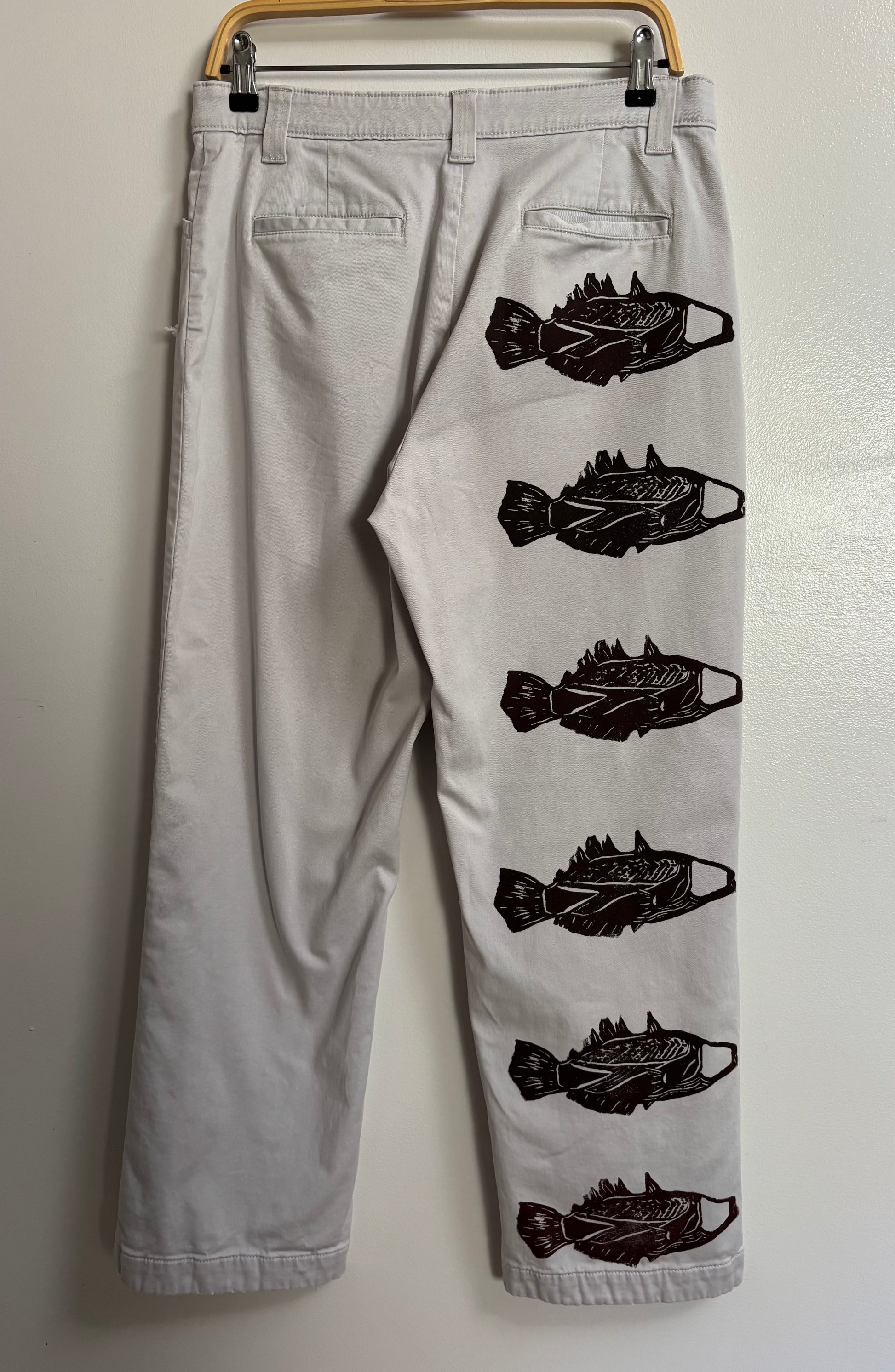 Humuhumunukunukuapua'a back leg print, on flannel lined pants. Extremely warm and comfortable, double layered, 100% cotton pants.