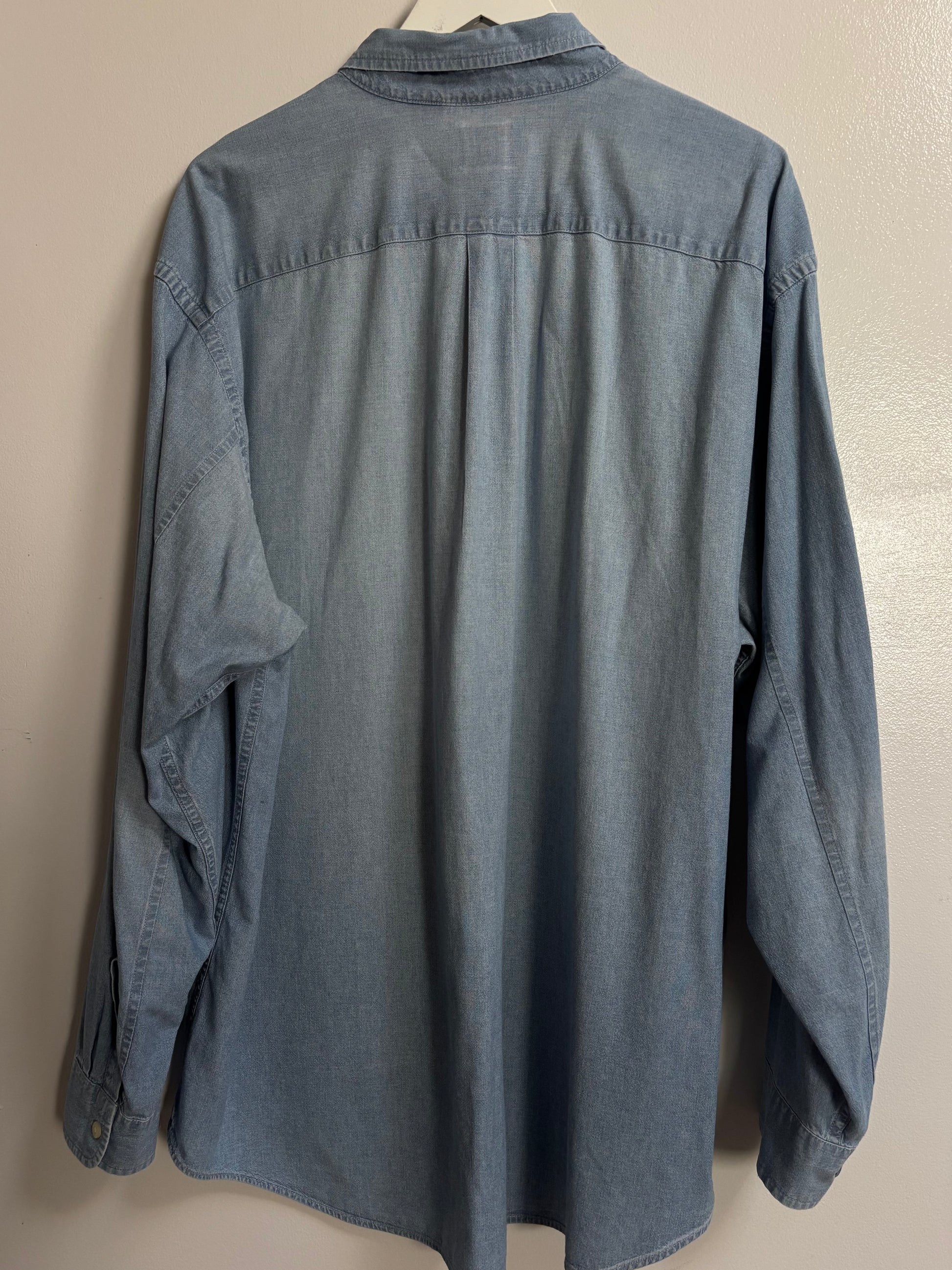 Humuhumunukunukuapua'a print on vintage shirt, perfectly worn in quality 100% cotton denim.