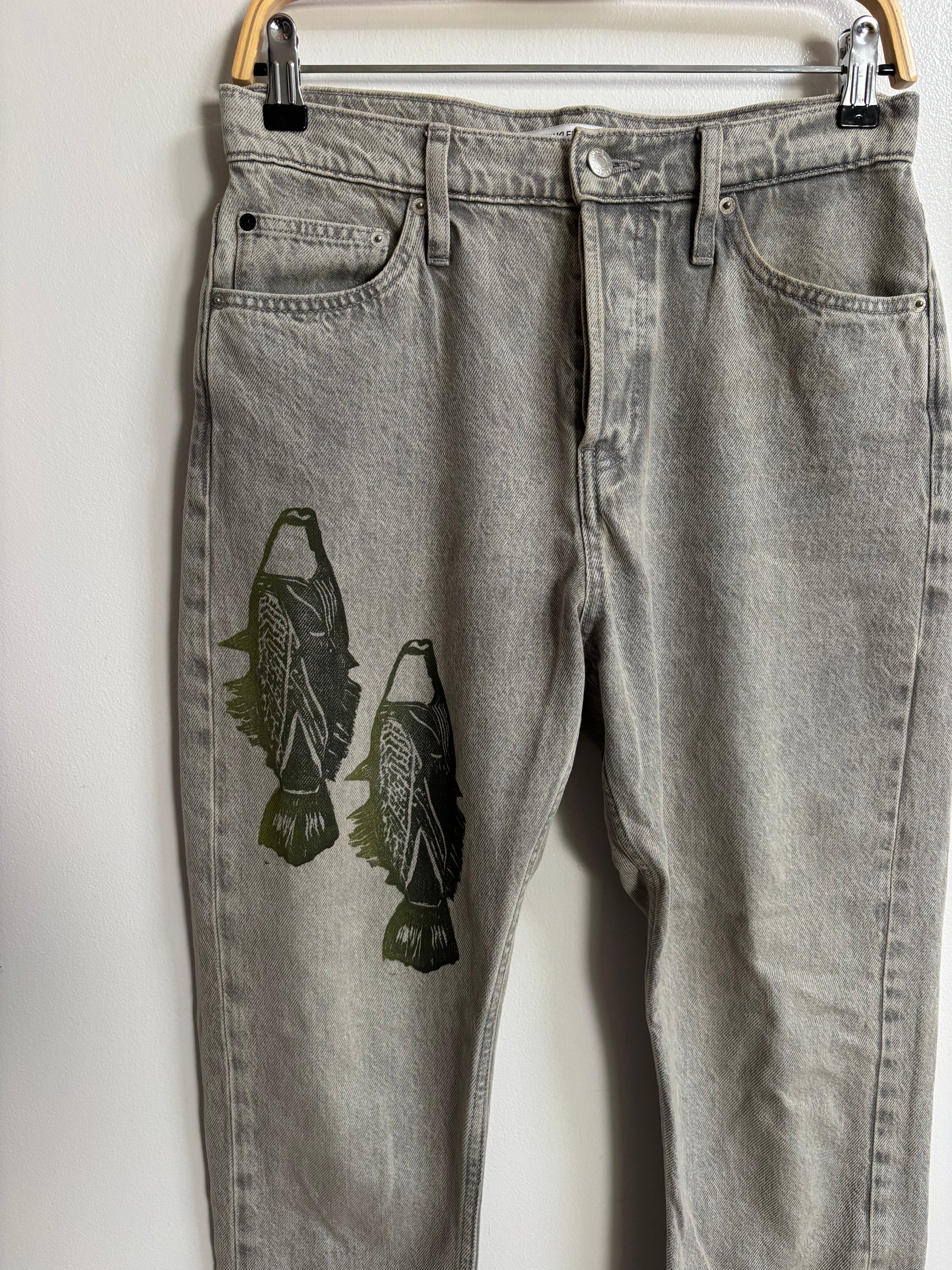 Humuhumunukunukuapua'a thigh print, 100% cotton jeans.