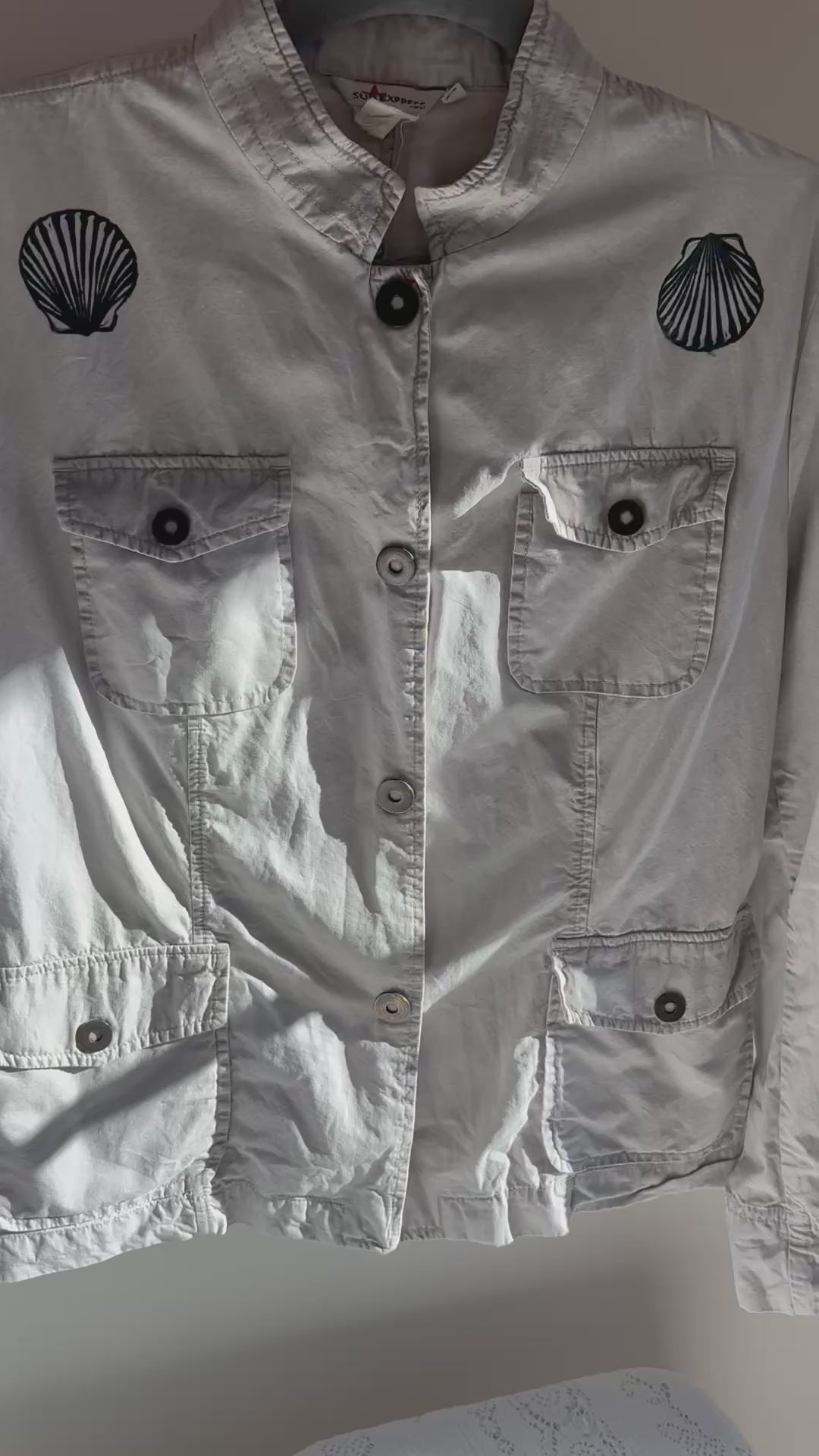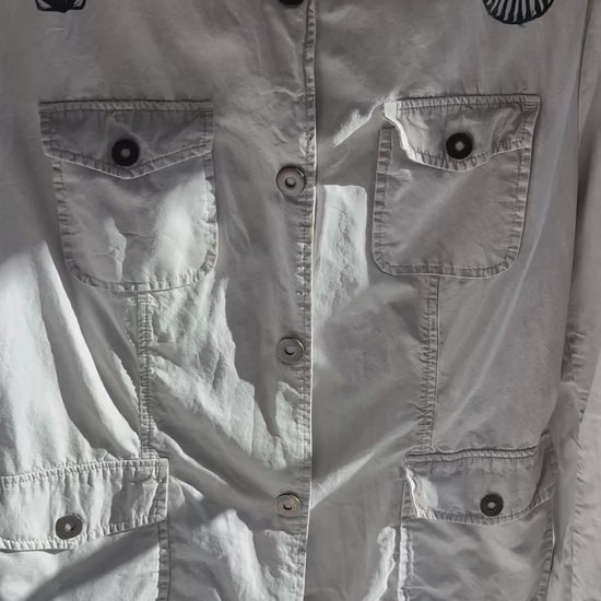 Scallop print yin yang lightweight jacket. 100% cotton vintage grey jacket.